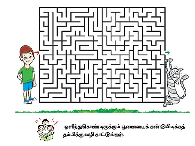 ஒளிந்துகொண்டிருக்கும் பூனையைக் கண்டுபிடிக்கத் தம்பிக்கு வழி காட்டுங்கள்.