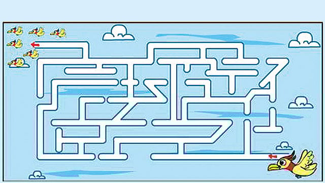 தனியாக இருக்கும் பறவைக்கு தனது கூட்டத்தோடு சேர்ந்து பறக்க ஆசை. கூட்டத்தோடு சேர அதற்கு வழிகாட்டுங்கள்.