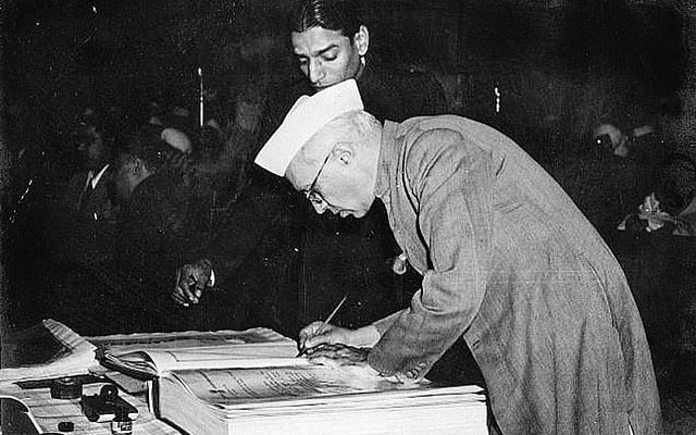 இந்திய அரசியல் அமைப்பு சட்டத்திற்கு 284 உறுப்பினர்களும் கையெழுத்திட்டனர். அப்போது மழை பெய்தது. ஒரு புதிய திட்டத்தை கொண்டு வரும் போது, மழை பெய்வது நல்லது என பல உறுப்பினர்கள் கூறினர்.