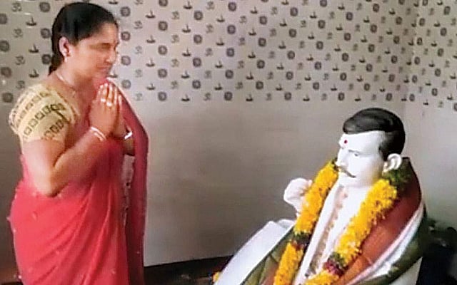 அதனைத் தொடர்ந்து தினமும் கணவரின் சிலைக்கு பூஜை செய்து வழிபட்டு வரும் மனைவி பத்மாவதி, கணவரின் பிறந்த நாள், நினைவு நாள் மற்றும் பவுர்ணமி ஆகிய தினங்களில் ஏழை எளியவர்களுக்கு அன்னதானமும் வழங்கி வருகிறார்.