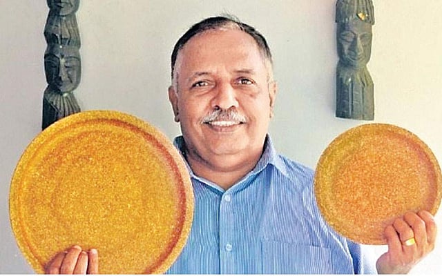 கேரளாவின் எர்ணாகுளத்தைச் சேர்ந்த விநயகுமார் பாலகிருஷ்ணன் என்பவர் கோதுமை உமியால் இந்தப் பொருள்களை உருவாக்கியுள்ளார்.