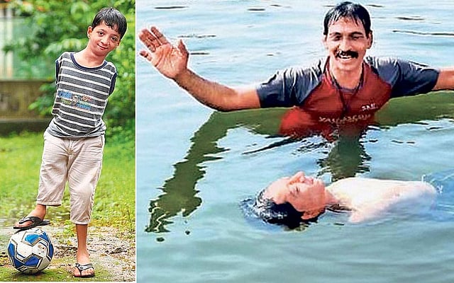 பிறப்பிலேயே இரண்டு கைகள் இல்லாமல், ஒரு கால் வளர்ச்சியில்லாமல் பிறந்த முகம்மது ஆஸிம், பெரியார் ஆறில் ஒரு கி.மீ நீந்தி சாதனை புரிந்திருக்கிறார்.