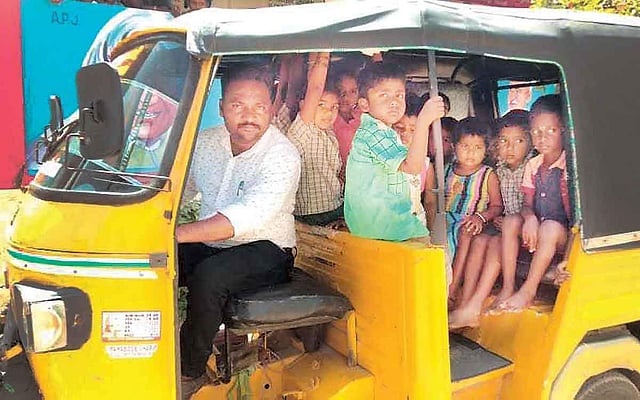 அடர்ந்த வனப் பகுதியில் வனவிலங்குகள் நடமாட்டம், வாகனங்களில் சென்றாலே அடிவயிறு கலங்கும் வகையில் வளைந்து நெளிந்து செல்லும் மலைப் பாதை, மலைவாழ் மக்களே நிரம்பிய கிராமம், ஆந்திர எல்லையையொட்டிய பகுதி வேறு.. என்று பல்வேறு சிரமங்கள் இருக்கும் இடத்தில், பணிக்குச் செல்லவே அரசு ஊழியர்கள், ஆசிரியர்கள் தயங்குவர். அங்கு துணிச்சலோடு பணிக்குச் சென்றுள்ள ஆசிரியர் மு.தினகரன், மாணவர்களை பள்ளிக்கு அழைத்து வந்து கற்பிக்க வைத்து வீட்டுக்குக் கொண்டு விடும் ஆட்டோ டிரைவராகவும் இருக்கிறார்.