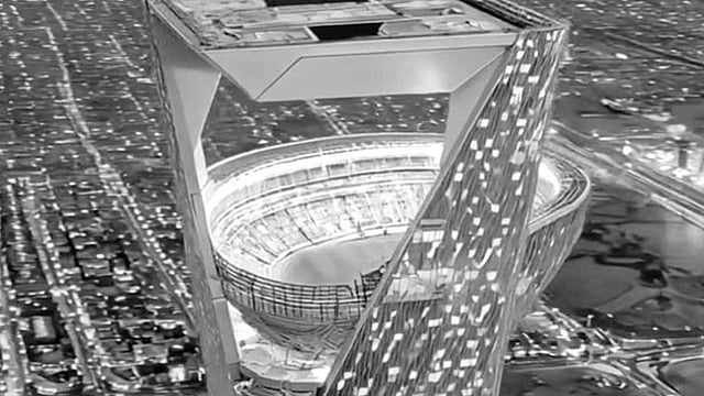 சவூதி அரேபியாவில் 2034-ஆம் ஆண்டில் எப்.ஐ.எப்.ஏ. கால்பந்தாட்ட உலகக் கோப்பைப் போட்டிகள் நடக்க உள்ளன. இதற்காக சுமார் 350 மீட்டர் (1,150 அடி கிட்டத்தட்ட 115 மாடி கட்டட உயரம்) உயரத்தில் 'ஹைடெக்' மைதானம் உருவாக்க அந்த நாட்டு அரசு திட்டமிட்டுள்ளது.