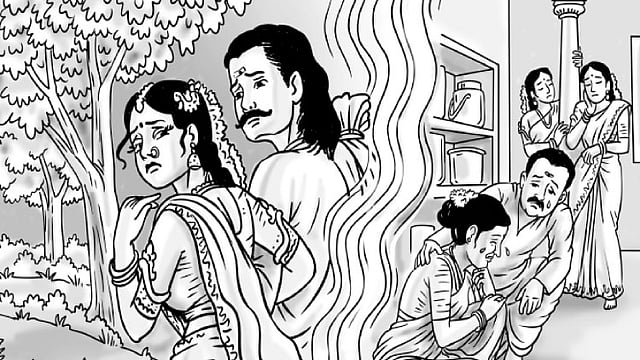 'பார்த்தோமே! அந்தப் பெண்ணின் தாயா நீங்கள்?. நல்லதுதான். அம்மா! சந்தனம் மலையிலே பிறந்தாலும் அது மலைக்குப் பயன்படுவதில்லை. உன் மகளும் அப்படித்தான். கடலிலே முத்து தோன்றுகின்றது. அது கடலுக்குப் பயன்படுவதில்லை. உங்கள் மகள் தக்கவனையே தன் துணையாகத் தேர்ந்தெடுத்திருக்கின்றாள். அவளுக்குத் துன்பம் விளைவிக்காதீர்கள்' என்று கூறினர்.