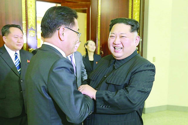 ஏப்ரல் 27-ஆம் தேதி வட கொரிய அதிபர் கிம் ஜோங் உன் மற்றும் தென் கொரிய அதிபர் மூன் ஜீயின் ஆகியோர் சந்தித்துப் பேசினர். பல காலமாக தொடர்ந்து இருந்து வந்த பகைக்கு இடையே இவர்களின் இந்த சந்திப்பு உலக முக்கியத்துவம் வாய்ந்ததாக கருதப்பட்டது.
