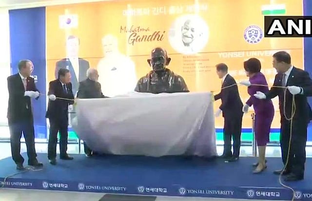 இரு நாட்டு உறவுகளை பலப்படுத்துவதற்கு, இரண்டுநாள் பயணமாக தென்கொரியா சென்றிருக்கும் பிரதமர் நரேந்திர மோடி, யோன்சேய் பல்கலையில் அமைக்கப்பட்டிருக்கும் மகாத்மா காந்தியின் உருவச் சிலை திறப்பு விழாவில் கலந்து கொண்டு பேசினார். இந்நிகழ்ச்சியில் தென்கொரியா அதிபர் மூன் ஜே -இன் மற்றும் ஐ.நா. முன்னாள் பொதுச் செயலர் பான் கி-மூன் ஆகியோரும் கலந்து கொண்டனர்.