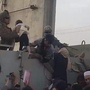 காபூல் விமான நிலையத்தில் சுவருக்கு அப்பால் உள்ள மேற்கத்திய ராணுவ வீரர்களிடம் குழந்தை ஒன்று ஒப்படைக்கப்படுவது போன்ற காட்சிகள் விடியோவில் பதவியாகியுள்ளது.