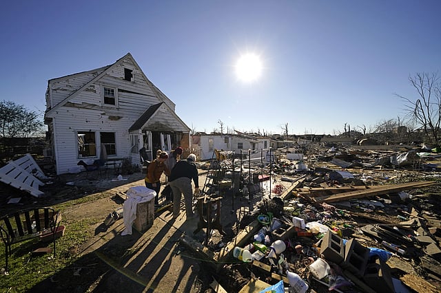 அமெரிக்காவின் கென்டகி, இல்லினாய்ஸ், அர்கன்சாஸ் உள்ளிட்ட 5 மாகாணங்களில் கடந்த வெள்ளிக்கிழமை இரவு சூறாவளி தாக்கியது. இதனால் குடியிருப்புகள் மற்றும் தொழிற்சாலைகள் இடிந்து விழுந்தன.