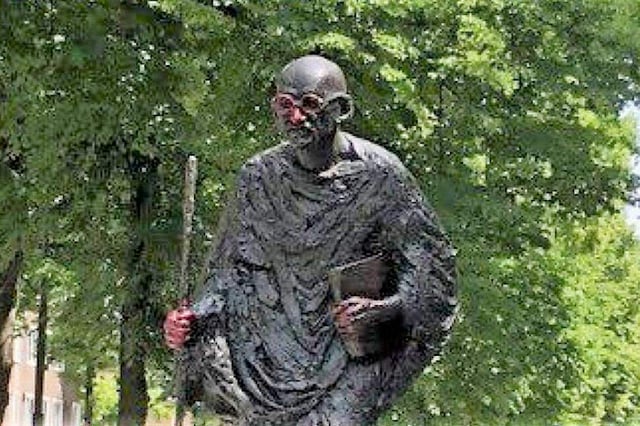ஆறு அடி உயரமும், 294 கிலோ எடையுடன் கூடிய வெண்கல காந்தி சிலை பூங்காவின் மையப்பகுதியில் வைக்கப்பட்டுள்ளது.
