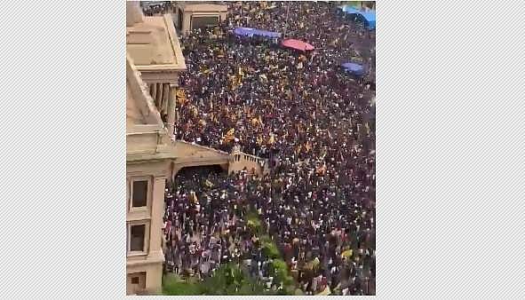 இலங்கை அதிபர் மாளிகையின் பாதுகாப்புக்காக அமைக்கப்பட்ட தடுப்புகளை எல்லாம் தள்ளிவிட்டு, மாளிகைக்குள் நுழைந்த போராட்டக்காரர்களிடம் இருந்து பாதுகாக்கும் பொருட்டு, அதிபர் கோத்தபய ராஜபட்சவை ராணுவத்தினர் பாதுகாப்பாக அதிபர் மாளிகையிலிருந்து வெளியேற்றியுள்ளனர்.