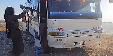 சிரியாவில் திங்கள்கிழமை நடத்தப்பட்ட பேருந்து தாக்குதலுக்கு இஸ்லாமிய தேச (ஐஎஸ்) பயங்கரவாதிகள் பொறுப்பேற்றனா்.