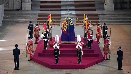 கடந்த 8-ஆம் தேதி மறைந்த அரசி எலிசபெத்தின் உடல், பொதுமக்கள் அஞ்சலி செலுத்துவதற்காக லண்டன் வெஸ்ட்மின்ஸ்டா் பகுதியிலுள்ள நாடாளுமன்ற வளாகத்தில் வைக்கப்பட்டுள்ளது.