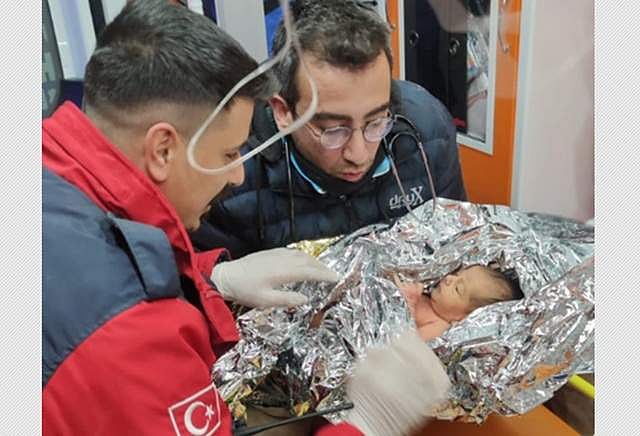 இந்நிலையில், தெற்கு சிரியாவிலுள்ள ஹேட்டே பகுதியிலிருந்த இடிபாடுகளிலிருந்து பிறந்து 10 நாள்களே ஆன குழந்தையையும் தாயையும் மீட்புப் படையினர் உயிருடன் மீட்டனர்.