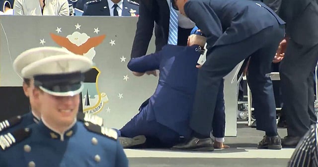 விமானப் படை நிகழ்வில் கீழே விழுந்த பைடன்!