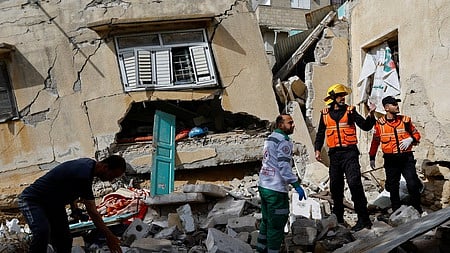 இஸ்ரேல் ராணுவத் தாக்குதலில் உருக்குலைந்த இஸ்லாமிய ஜிஹாத் தளபதியின் இல்லம்.