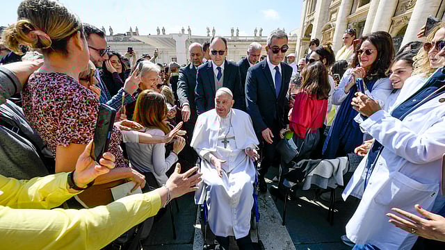 நிமோனியாவால் கடுமையாக பாதிக்கப்பட்டிருந்த போப் பிரான்சிஸ்(88) கடந்த மார்ச் 23-ஆம் தேதி மருத்துவமனையிலிருந்து வாடிகன் திரும்பினார். இந்த நிலையில், புனித பீட்டர் சதுக்கத்தில் ஞாயிற்றுக்கிழமை(ஏப். 6) நடைபெற்ற திருப்பலி நிகழ்ச்சியில் திரண்டிருந்த மக்களை போப் பிரான்சிஸ் சந்தித்தார்.