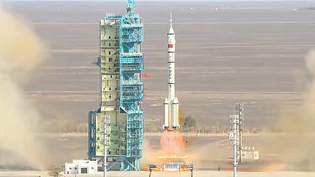 சீனாவின் தியான்காங் விண்வெளி நிலையத்தை நோக்கி மூன்று வீரா்களுடன் ஷென்ஷோ-20 விண்வெளி ஓடம் கோபி பாலைவனத்தில் அமைந்துள்ள ஜிகுவான் ஏவுதளத்திலிருந்து வியாழக்கிழமை விண்ணில் செலுத்தப்பட்டது (படம்).