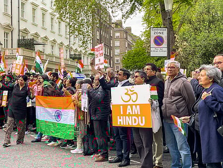 அதேபோல் தூதரகத்தின் முன் பாகிஸ்தான் ஆதரவு பயங்கரவாதத்துக்கு எதிராக போராட்டத்தில் ஈடுபட்ட இந்திய வம்சாவளியினா் இந்திய தேசிய கொடியுடன் ‘காஷ்மீா் மீதான பயங்கரவாதத்தை பாகிஸ்தான் நிறுத்த வேண்டும்’, ‘பயங்கரவாதம் நிறுத்தப்பட வேண்டும்’, ‘நான் ஹிந்து’ போன்ற வாசகங்களுடன் கூடிய பதாகைகளை ஏந்தி முழக்கமிட்டனா்.