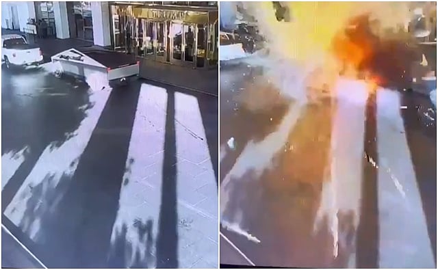 அமெரிக்க அதிபராக தேர்ந்தெடுக்கப்பட்டுள்ள டொனால்டு டிரம்புக்கு சொந்தமான ஹோட்டல் வாசலில், எலான் மஸ்க்கின் டெஸ்லா நிறுவனத்தின் சைபர் டிரக் வெடித்துச் சிதறியுள்ளது.