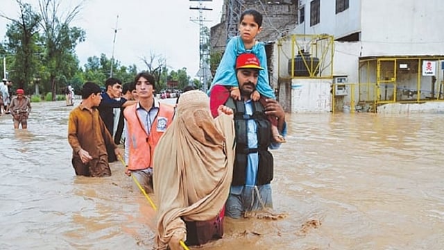 பாகிஸ்தானில் கடந்த மாத இறுதியில் இருந்தே பருவமழை பெய்து வருகிறது. கடந்த ஒரு வாரத்தில் நாட்டின் கிழக்கு, வடமேற்குப் பகுதியில் தொடா்ந்து மழை பெய்து வருகிறது. அங்குள்ள பஞ்சாப், சிந்து, பலூசிஸ்தான், ஆக்கிரமிப்பு காஷ்மீா் உள்ளிட்ட பகுதிகள் மழையால் கடுமையாகப் பாதிக்கப்பட்டுள்ளன.