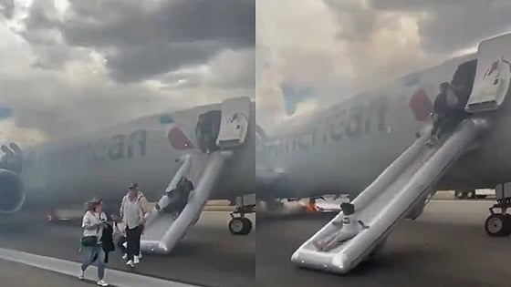 இது குறித்து வெளியான விடியோவில், புகை சூழ்ந்த விமானத்தில் இருந்து பயணிகள் ஒவ்வொருவராக அவசர வெளியேற்றம் வழியாக பத்திரமாக அனுப்பிவைக்கப்படுகின்றனர்.