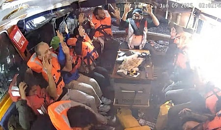 வழியில், லிபியா கடலோரக் காவல்படையால் தடுத்து வைக்கப்படுவதைத் தவிா்க்க நான்கு அகதிகள் கடலில் குதித்தபோது, அவா்களை இந்தக் கப்பல் மீட்டது.