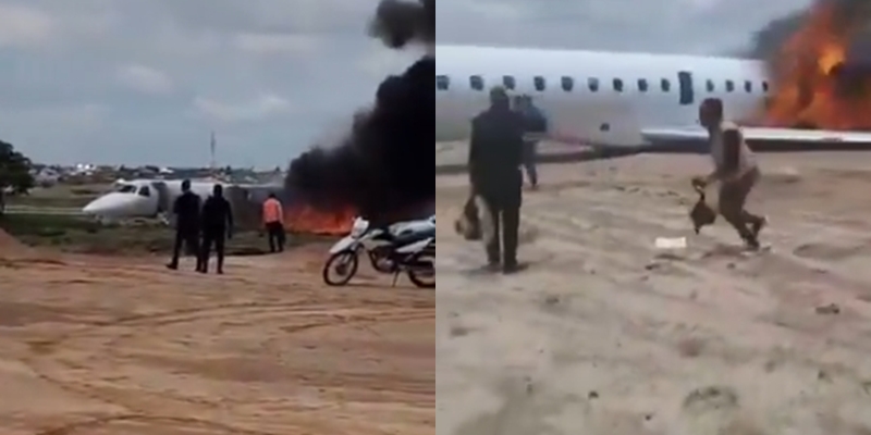 இது தொடர்பாக வெளியாகும் விடியோக்களில், வால் பகுதியிலிருந்து தீ பரவுகிறது, ஒரு சிலர் தண்ணீரை ஊற்றி தீயை அணைக்கும் பணியிலும், மற்றவர்கள் பயணிகளை வெளியேற்றுவதிலும் ஈடுபடுகிறார்கள்.