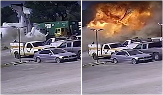 டெக்சாஸ் மாகாணத்தில் நின்றுகொண்டிருந்த வாகனங்கள் மீது விமானம் விழுந்து தீப்பிடித்து எரிந்தது.