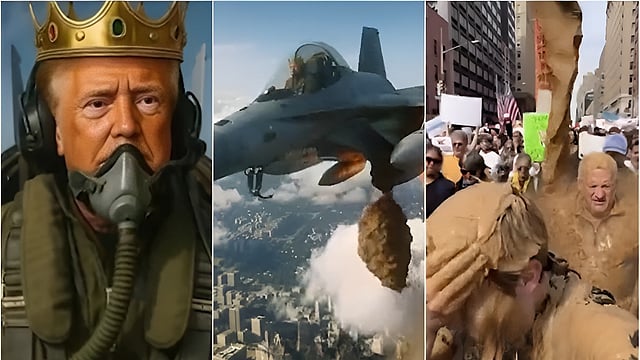 அமெரிக்காவில் அரசுக்கு எதிராக போராட்டம் நடத்துபவர்கள் மீது விமானத்தில் இருந்து கழிவுகளை வீசி அவமானப்படுத்துவது போல அதிபர் டொனால்ட் டிரம்ப் செய்யறிவு விடியோ ஒன்றை வெளியிட்டுள்ளார்.
