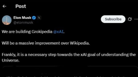 எலான் மஸ்க்கின் எக்ஸ் ஏஐ நிறுவனம் உருவாக்கியுள்ள இந்த க்ரோக்கிபீடியாவை பயன்படுத்துவதற்கு எளிதாகவும் சிரமம் எதுவும் இருக்காது என்றும் அவர் கூறியுள்ளார். அதுமட்டுமின்றி, இது அனைவருக்கும் இலவசமானது என்றும் அவர் தெரிவித்துள்ளார்.