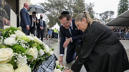 ஆஸ்திரேலியாவுக்கு அரசுமுறைப் பயணம் மேற்கொண்டுள்ள இஸ்ரேல் அதிபா் ஐசக் ஹொ்சாக், சிட்னி போண்டி கடற்கரையில் யூத பண்டிகை கொண்டாட்டங்களுக்கு இடையே நடந்த பயங்கரவாதத் தாக்குதலின் நினைவிடத்துக்குச் சென்று திங்கள்கிழமை அஞ்சலி செலுத்தினாா்.