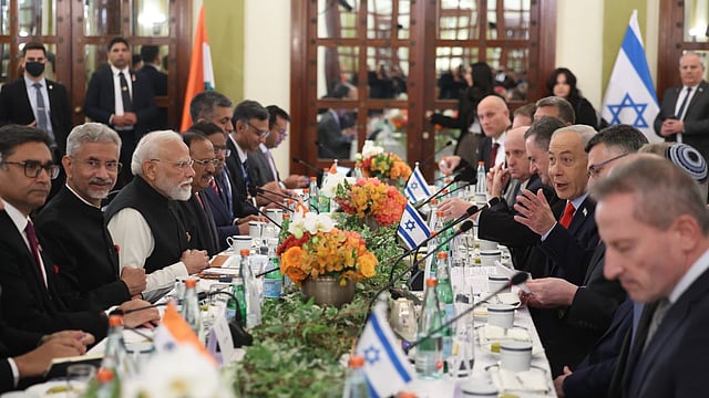 இஸ்ரேலுக்குப் புதன்கிழமை (பிப். 25) சென்றிறங்கிய பிரதமா் மோடிக்கு அந்நாட்டில் உற்சாக வரவேற்பளிக்கப்பட்டது. அதன்பின், அங்கு பிரதமர் மோடிக்கும் இஸ்ரேல் பிரதமர் பெஞ்சமின் நெதன்யாகுவுக்கும் இடையேயான பேச்சுவார்த்தையைத் தொடர்ந்து, இரு தரப்புக்குமிடையே வர்த்தகம், விவசாயம், ஆற்றல், இணையவழி, மின்னணு துறைகள் ஆகியவற்றில் ஒப்பந்தங்கள் கையொப்பமாகியுள்ளன.