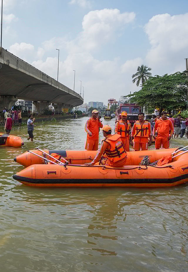 வெள்ளத்தில் சிக்கிய மக்களை மீட்ட தேசிய பேரிடர் மீட்புப் படை வீரர்கள்.