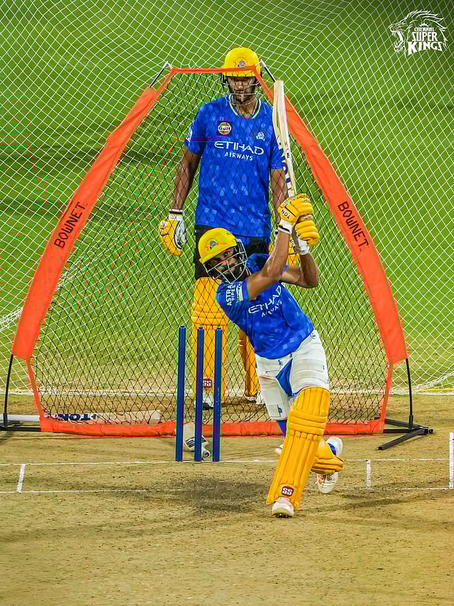 சிக்ஸர் விளாசுவது எப்படி? பயிற்சியில் சிஎஸ்கே வீரர்கள்!