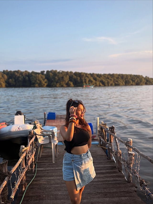 புதுவைக் கடலில் டால்பினுடன்... சஞ்சனா திவாரி!