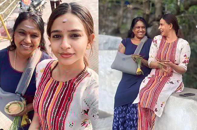 இதனிடையே மகாநதி தொடரில் நாயகியாக நடித்துவரும் நடிகை திவ்யா கணேஷுடன் கோயிலுக்குச் சென்று அவருடன் எடுத்துக்கொண்ட புகைப்படத்தை இணையத்தில் கம்பம் மீனா பகிர்ந்துள்ளார்.