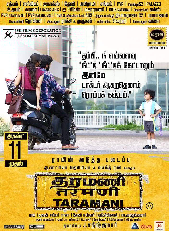 தங்க மீன்கள் படத்துக்கு பிறகு ராம் இயக்கியுள்ள படம் - தரமணி. வசந்த் ரவி, ஆண்ட்ரியா, அஞ்சலி, அழகம் பெருமாள் போன்றோர் நடித்துள்ள இப்படத்துக்கு யுவன் சங்கர் ராஜா இசையமைத்துள்ளார்.