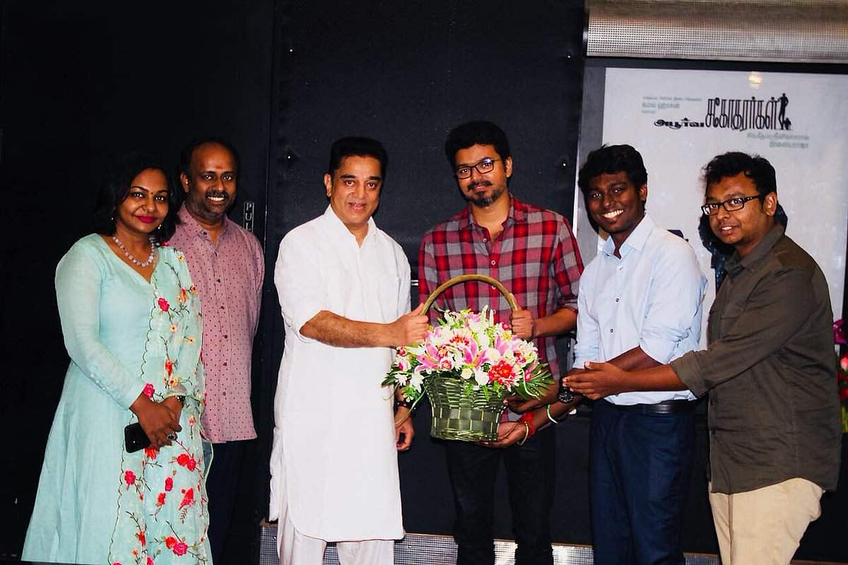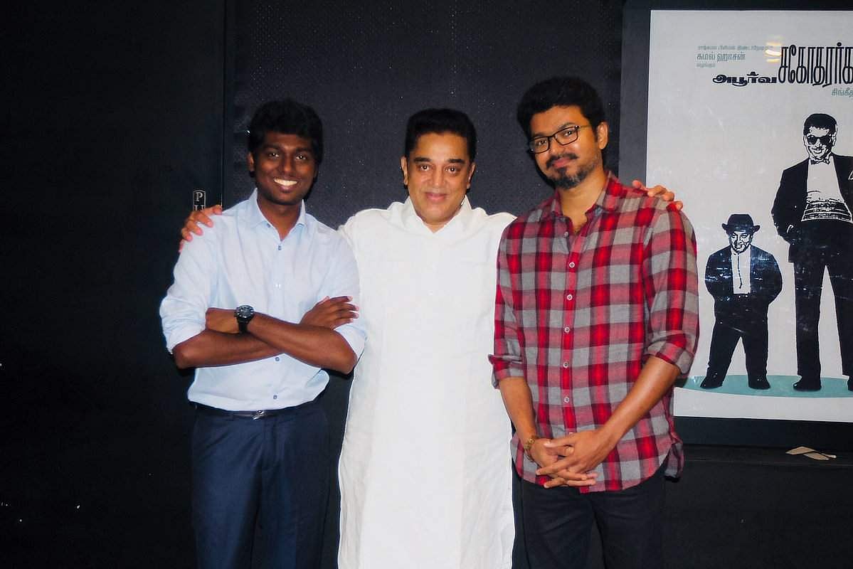 இந்நிலையில் ஆழ்வார்பேட்டையில் உள்ள தன்னுடைய இல்லத்தில் மெர்சல் படத்தை விஜய், அட்லி ஆகியோருடன் சேர்ந்து பார்த்தார் கமல். இதன் புகைப்படங்கள் வெளியிடப்பட்டுள்ளன. அதில் அபூர்வ சகோதரர்களின் படம் தொடர்பான போஸ்டரின் அருகே நின்று கமலுடன் இணைந்து படக்குழுவினர் புகைப்படம் எடுத்துக்கொண்டுள்ளார்கள்.