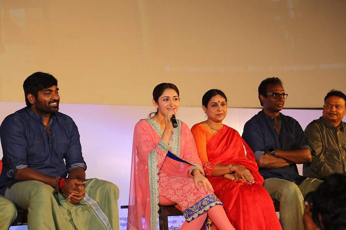 ஒரு தாய் தன்னுடைய மகனின் வளர்ச்சியை எப்படிப் பெருமிதமாக பார்த்துக் கர்வப்பட்டு கொள்வாரோ அதே போல் விஜய் சேதுபதியின் வளர்ச்சியை நான் பார்க்கிறேன். அவர் மேலும் வளரவேண்டும் என்று வாழ்த்துகிறேன் என்றார்.