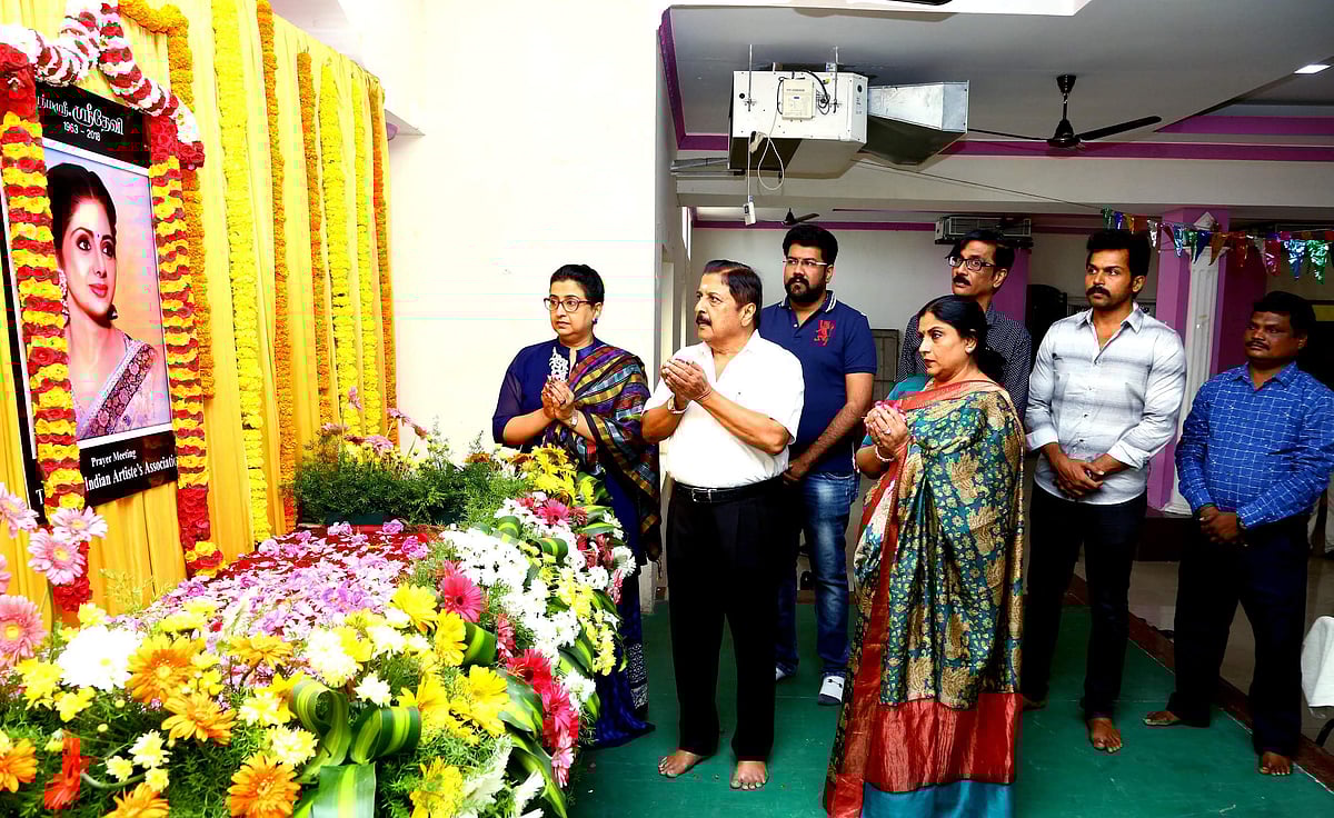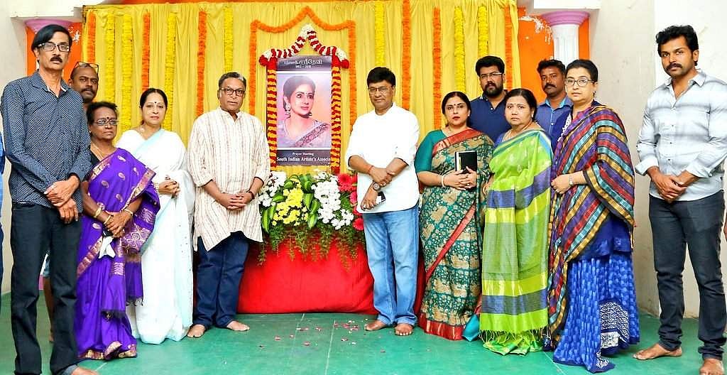 இதைத் தொடர்ந்து, தென்னிந்திய நடிகர் சங்கத்தின் சார்பில் ஸ்ரீதேவியின் புகைப் படத்துக்கு ஞாயிற்றுக்கிழமை அஞ்சலி செலுத்தப்பட்டது. இதையடுத்து, போனிகபூர் ஏற்பாடு செய்திருந்த ஸ்ரீதேவி நினைவஞ்சலிக் கூட்டம் சென்னையில் உள்ள தனியார் நட்சத்திர ஹோட்டலில் நடைபெற்றது. இதில், தமிழ்த் திரையுலகினர் ஏராளமானோர் கலந்து கொண்டனர்.