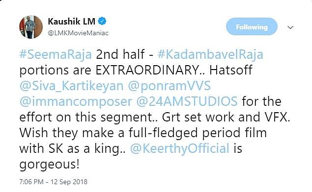 பொன்ராம் இயக்கத்தில் வருத்தப்படாத வாலிபர் சங்கம், ரஜினிமுருகன் ஆகிய படங்களில் நடித்த சிவகார்த்திகேயன் மீண்டும் அவருடைய இயக்கத்தில் நடித்துள்ள படம் - சீமராஜா. இந்தப் படத்தில் சிவகார்த்திகேயன், சமந்தா, சூரி, நெப்போலியன், சிம்ரன் உள்ளிட்ட பலர் நடித்துள்ளார்கள். இசை - இமான், ஒளிப்பதிவு - பாலசுப்ரமணியம், பாடல்கள் - யுகபாரதி. 24ஏஎம் ஸ்டுடியோஸ் தயாரிப்பில் உருவாக்கப்பட்டுள்ள இப்படத்தின் தொலைக்காட்சி உரிமையை சன் டிவி பெற்றுள்ளது.