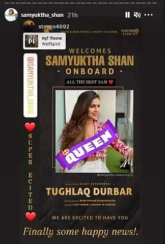 இந்நிலையில் விஜய் சேதுபதி நடிக்கும் துக்ளக் தர்பார் படத்தில் சம்யுக்தா இணைந்துள்ளார்.