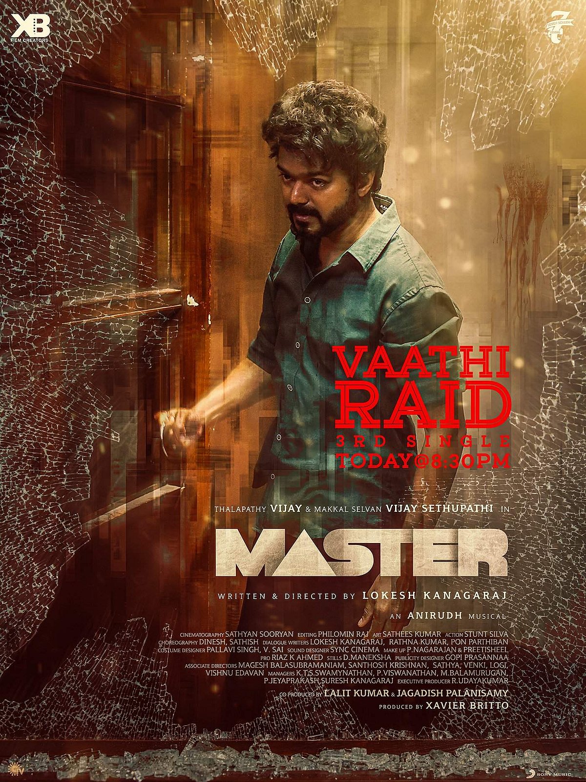 லோகேஷ் கனகராஜ் இயக்கத்தில் விஜய் நடிப்பில் உருவாகியுள்ள திரைப்படம் மாஸ்டர். இந்தப் படத்தில் விஜய் சேதுபதி, மாளவிகா மோகனன், சாந்தனு உள்ளிட்டோர் நடித்துள்ளனர். அனிருத் இசையமைத்துள்ளார்.