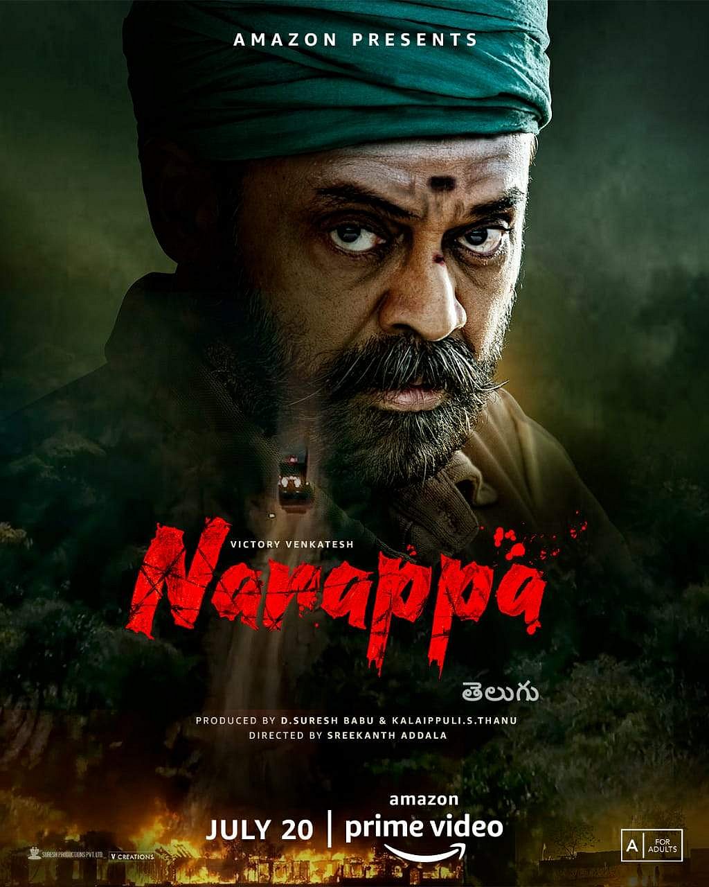 அசுரன் படத்தின் தெலுங்கு ரீமேக்கான நரப்பா, அமேசான் பிரைம் ஓடிடியில் ஜூலை 20 அன்று வெளியாகிறது.