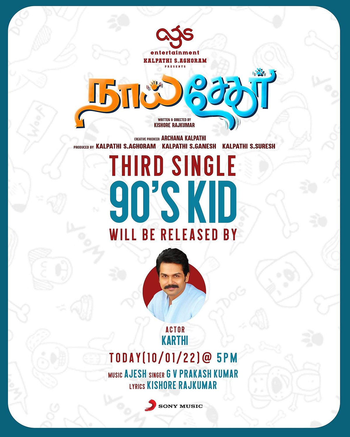 அஜீஸ் இசையில் நைன்டிஸ் கிட் எனத் துவங்கும் இந்தப் பாடலை இசையமைப்பாளரும் நடிகருமான ஜி.வி.பிரகாஷ் பாடியுள்ளார். இந்தப் பாடலை கிஷோர் ராஜ்குமார் எழுதியுள்ளார். இந்தப் பாடலை இன்று மாலை 5 மணிக்கு நடிகர் கார்த்தி வெளியிடுகிறார்.