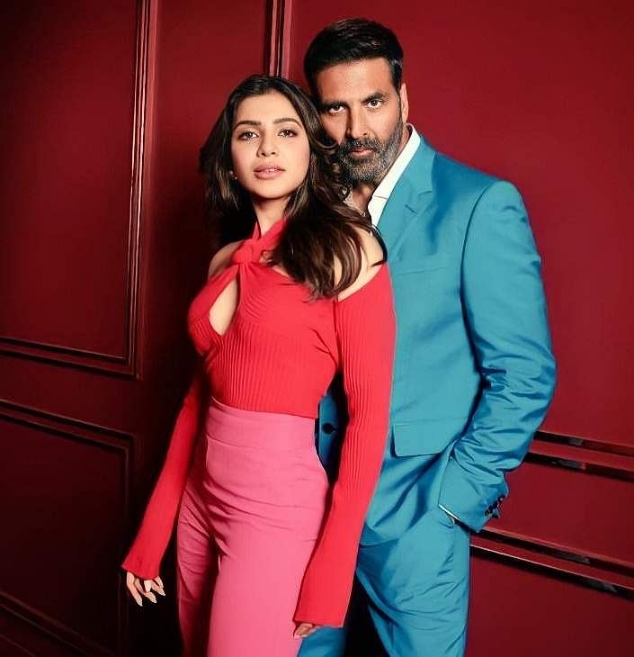 நடிகை சமந்தாவை அக்ஷய் குமார் தூக்கி செல்லும் விடியோ காட்சி சமூக வலைதளங்களில் வைரலாகி வருகிறது.