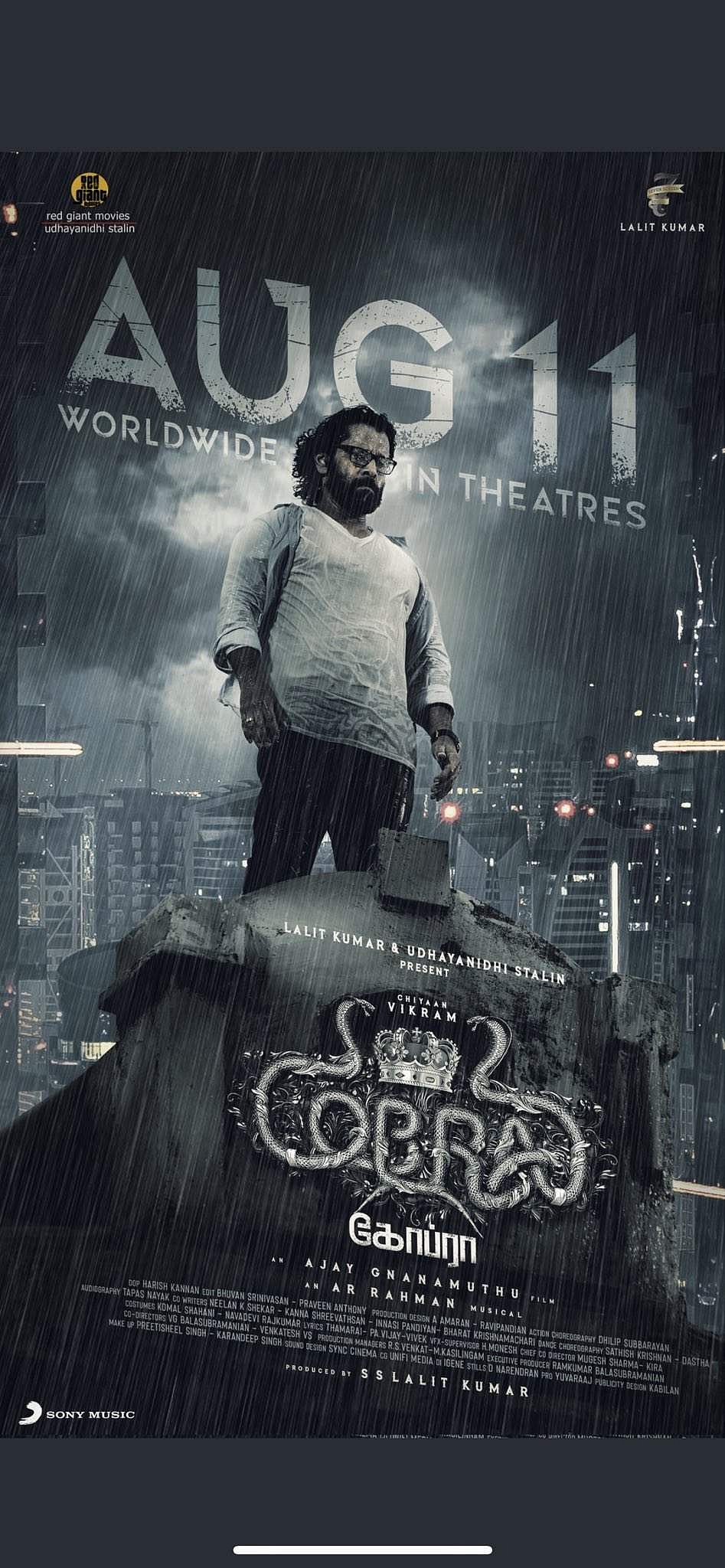 அஜய் ஞானமுத்து இயக்கத்தில் விக்ரம் நடித்துள்ள கோப்ரா திரைப்படம் வருகிற ஆகஸ்ட் 11 ஆம் தேதி திரைக்குவரும் என அறிவிக்கப்பட்டுள்ளது.