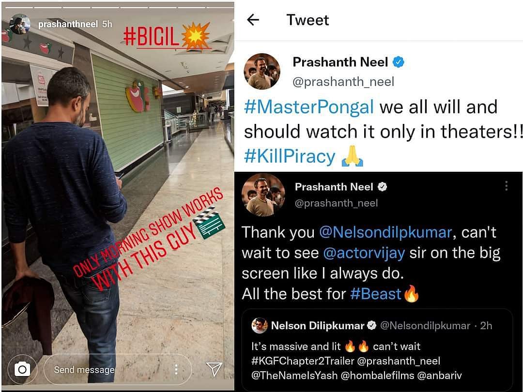 மேலும் 'பிகில்' மற்றும் 'மாஸ்டர்' படங்களை திரையரங்கில் பார்த்தது குறித்து பிரசாந்த் நீலின் பழைய பதிவுகளை ரசிகர்கள் தற்போது பகிர்ந்து கொண்டாடி வருகின்றனர்.