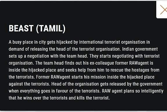 'பீஸ்ட்' படத்தின் டிரெய்லர் சமீபத்தில் வெளியாகி நல்ல வரவேற்பை பெற்றது. இந்த நிலையில் அமெரிக்காவைச் சேர்ந்த கேலக்ஸி திரையரங்கம் பீஸ்ட் படக் கதையை பகிர்ந்துள்ளது.